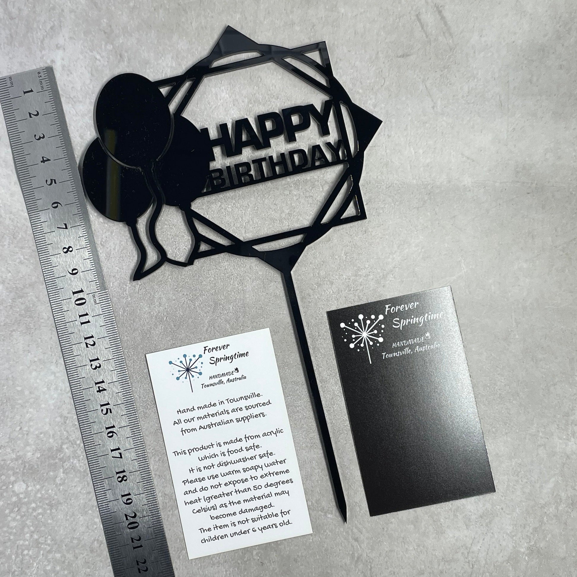 Party HAPPY BIRTHDAY 'L' Cake Topper 'Balloons' made from acrylic. The topper is about 222mm tall and about 132mm at the widest point.
