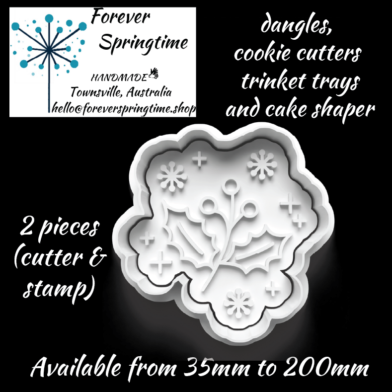 CHRISTMAS Holly (b) Cutter and Embosser Stamp: Art, Baking, Craft