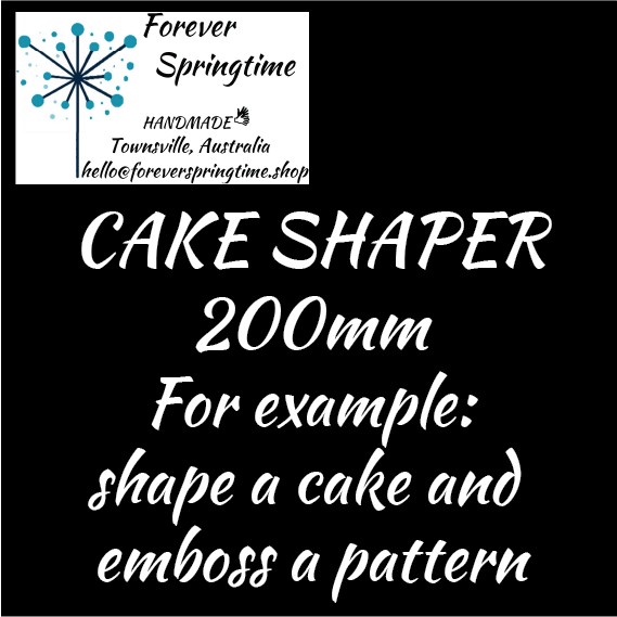 - *NEW* *NEW* CAKE SHAPER 200mm - Comes with a thick cutter to push through a light cake (eg a sponge cake). After icing the cake, use the matching embossing stamp to decorate the cake.