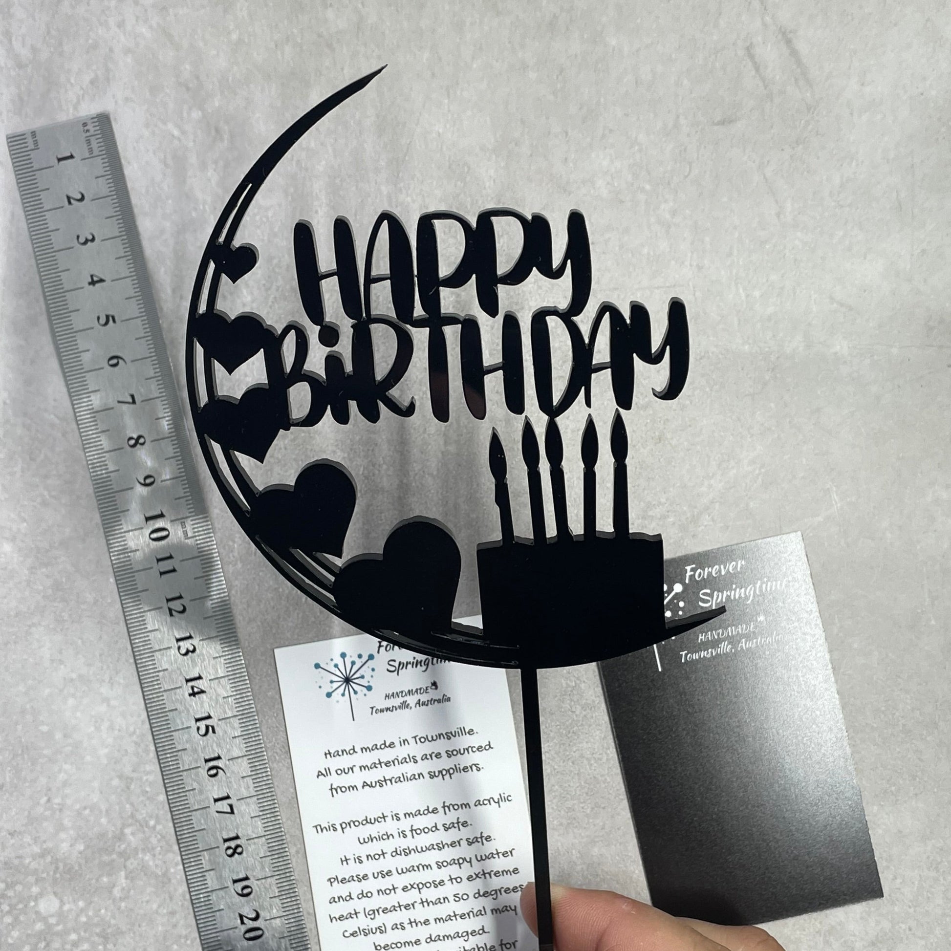 The topper is made from food safe acrylic on a laser at my home in Townsville. The items are food safe. They are not dishwasher safe. Please use warm soapy water only. Please do not expose to extreme heat (greater than 50 degrees Celsius) as the item may become irreparably damaged. They are not suitable for children under 6 years old.